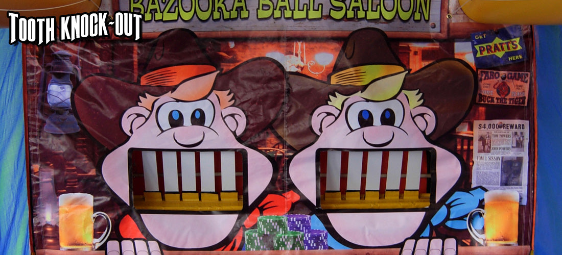 Cowboy Bazooka Ball is a fun way to experience our Bazooka Ball guns with a carnival type game. In this game two players at a time use our Bazooka Ball guns to shoot 2" foam balls at our cowboys to try and knock down their teeth. Win by knocking down all five teeth with three shots or simply knock down more teeth than your opponent.