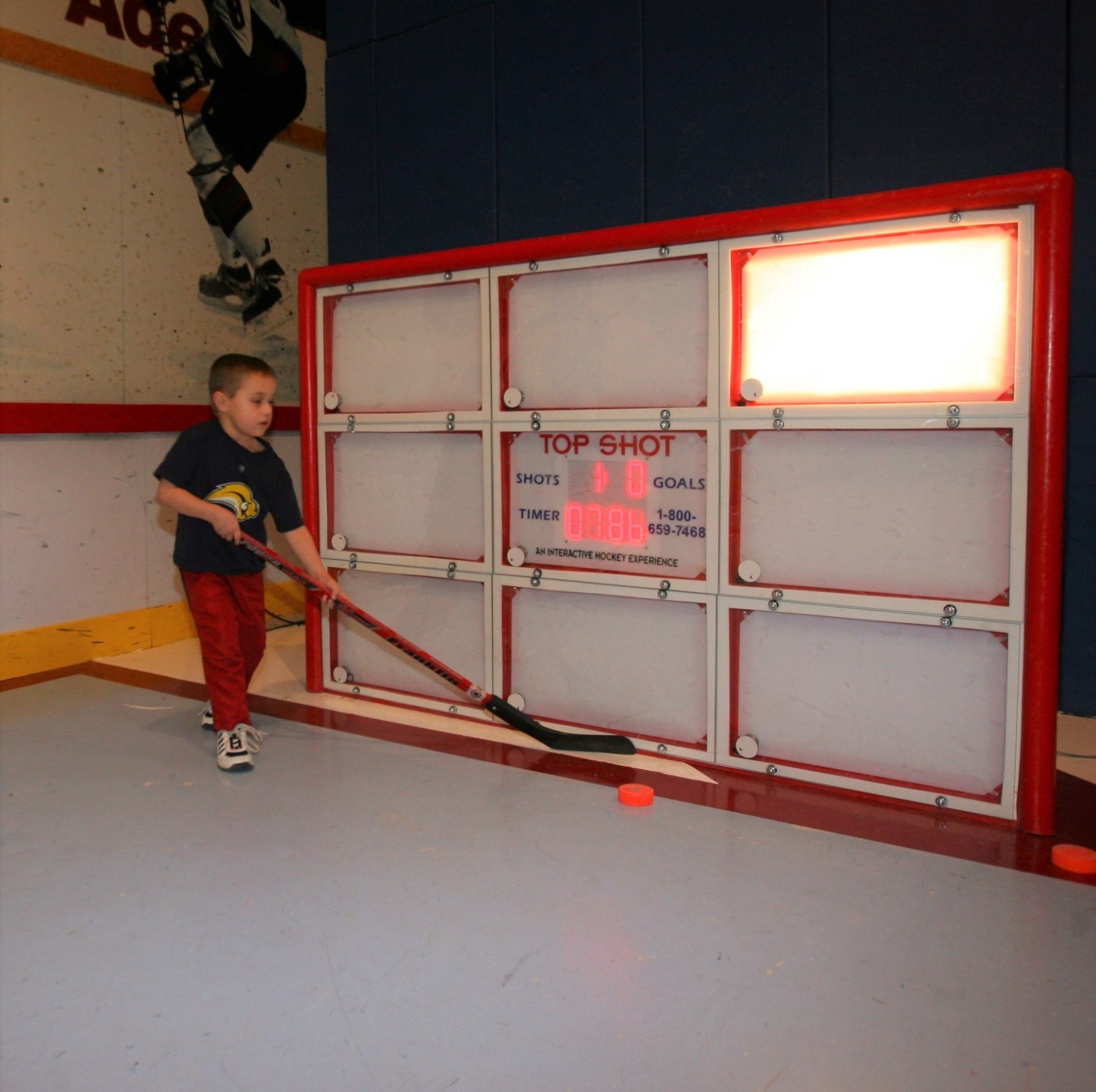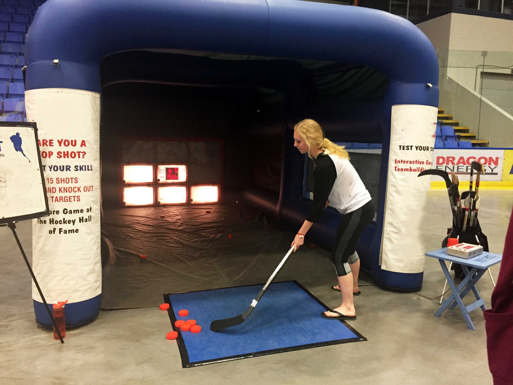 The system can be used for interactive Fan Zones, tournaments, promotions, and for training on and off the ice. The net is made of a durable high-grade polymer shell with high-density polymer panels that are extremely break resistant.