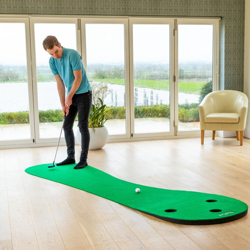 This 10ft Putting mat for the floor feature 3 holes for varied practice.