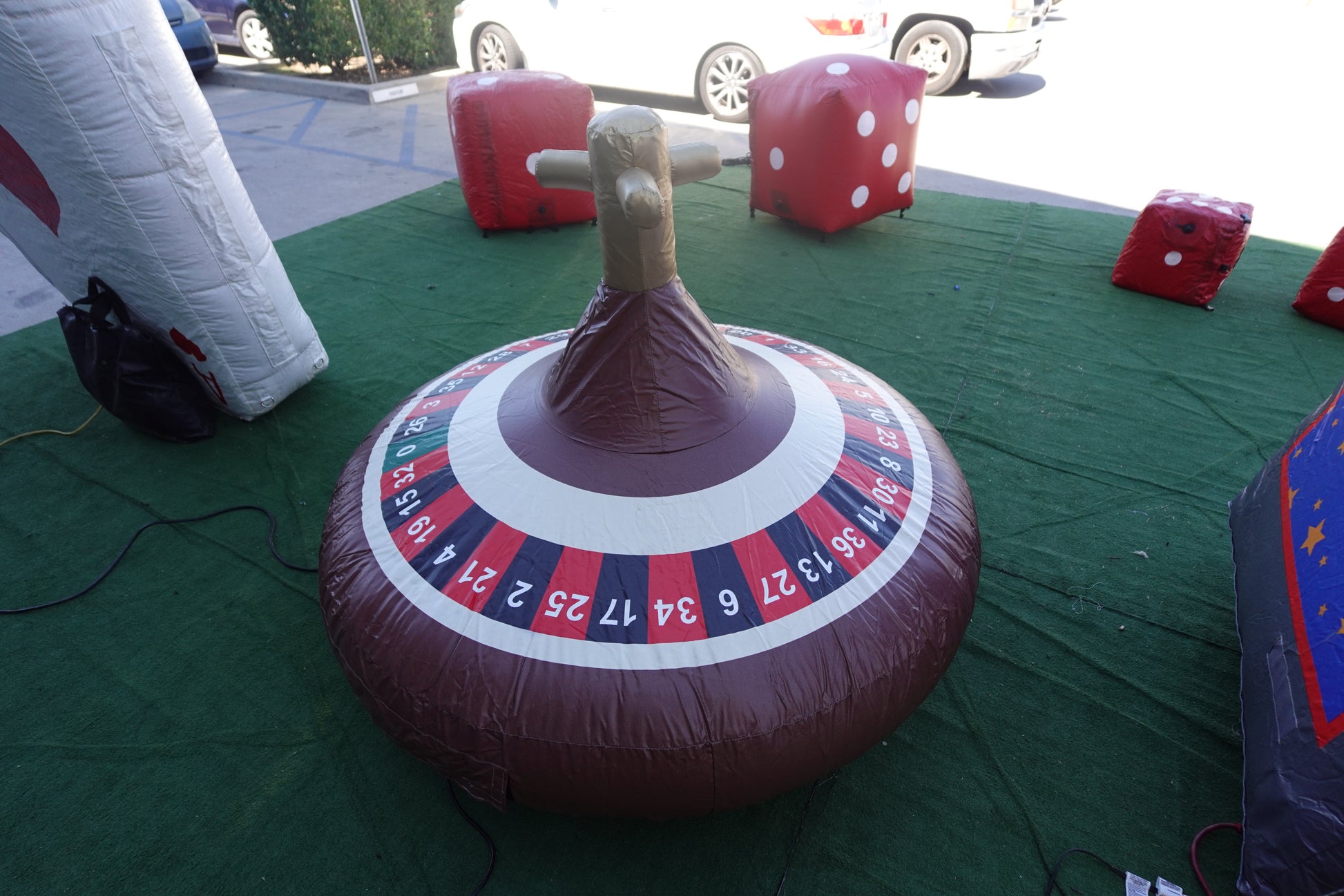 Introducing our 5-foot diameter inflatable roulette wheel display – the perfect addition to any casino-themed event! This eye-catching centerpiece adds a touch of excitement and authenticity to your party or promotional event. With its vibrant colors and attention-grabbing design, our inflatable roulette wheel is sure to be a hit with guests of all ages. Elevate your event to the next level – book now!