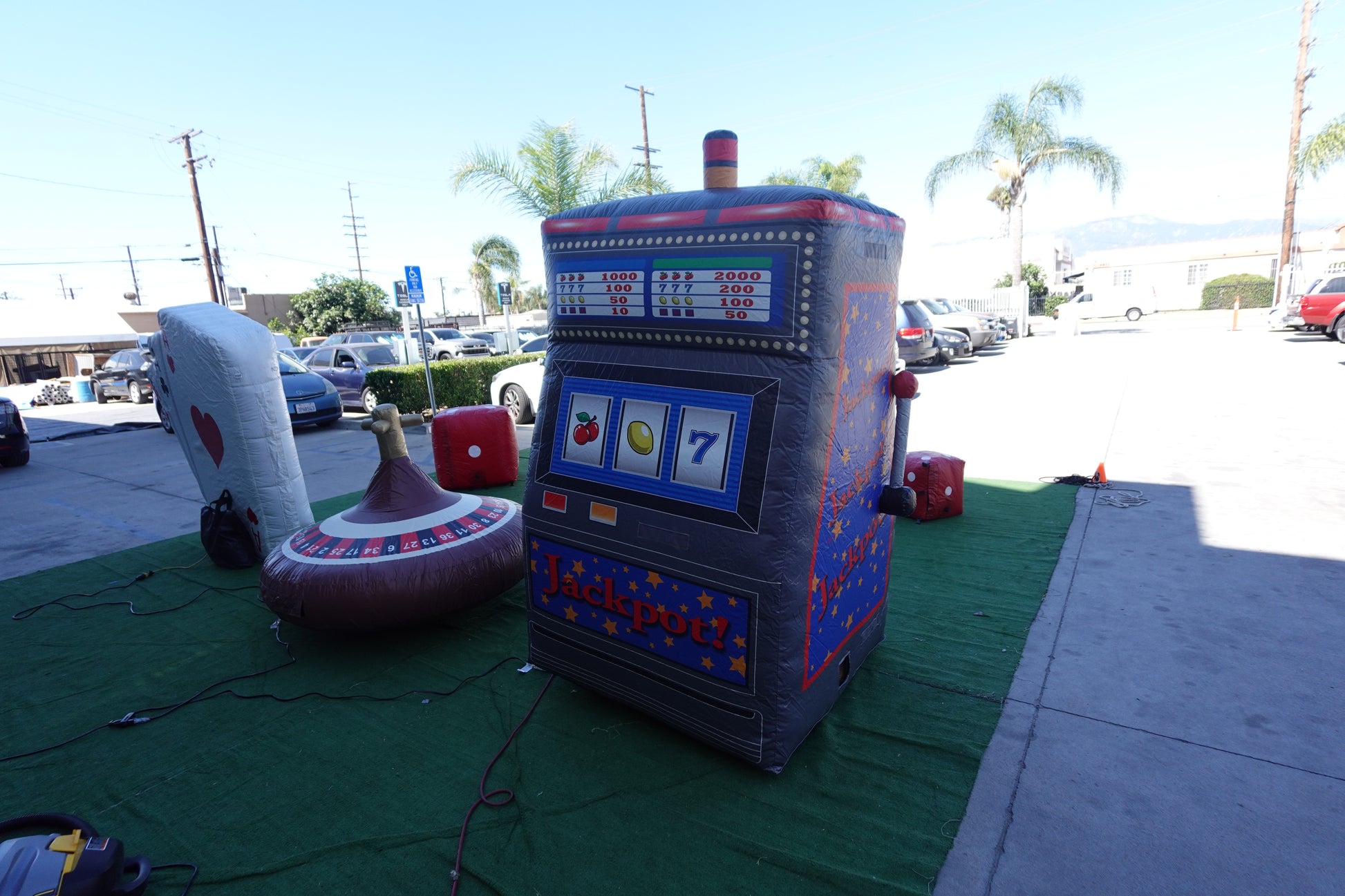 Step right up to the ultimate attraction for your casino-themed event – our towering 7-foot inflatable slot machine! Bring the thrill of the casino floor to your party with this larger-than-life centerpiece that's guaranteed to catch everyone's eye. Perfect for parties, promotions, or any occasion where you want to add a touch of excitement. Book now and hit the jackpot with your guests!
