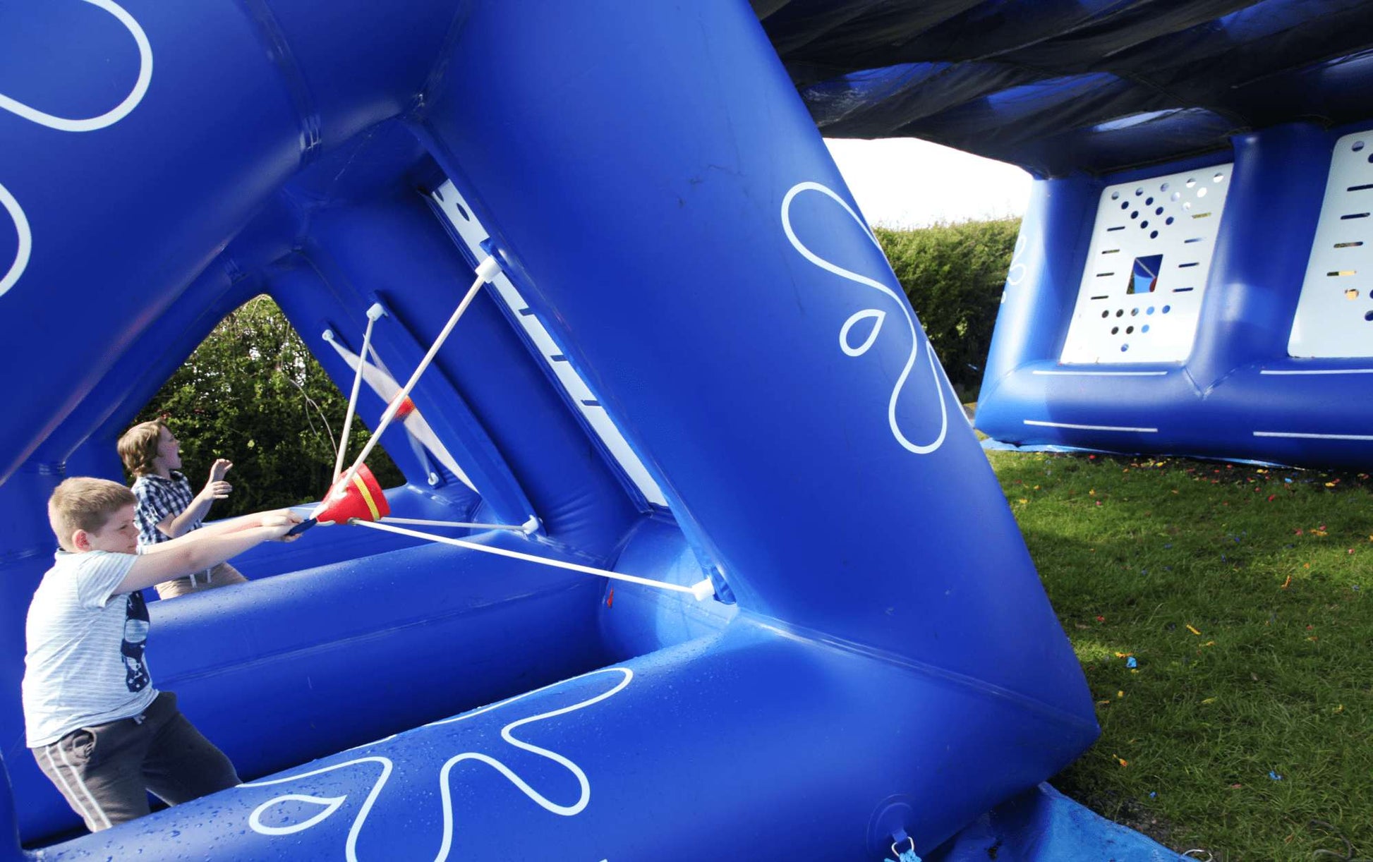 Have a wild and wet backyard battle with Inflatable Water Wars! The perfect outdoor summer game, your family and friends will be laughing and cheering for a splashy good time. Get set and GO for the best water-drenched competition ever!