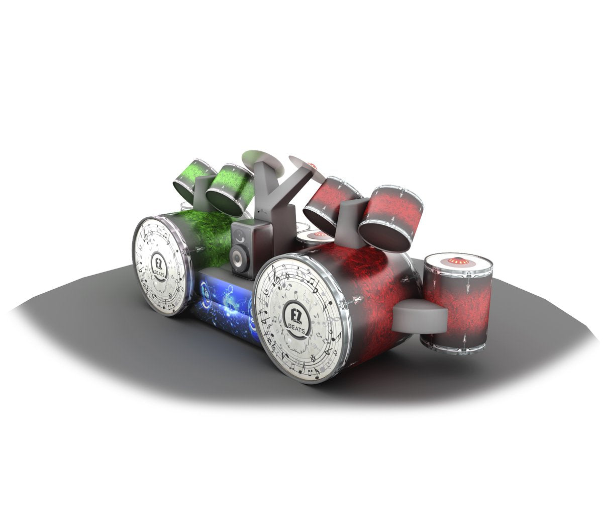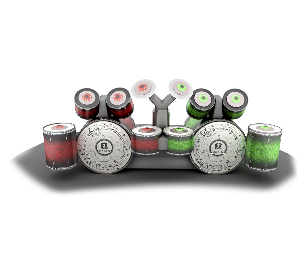 Rock out! One person is Team Red the other is Team Green. The object of the this Battle Light Inflatable Drummer Game is to hit one of the five different illuminated lights on your side of the Inflatable Drum Set. Every time you hit a glowing light our electronic scoring system adds up your hits.