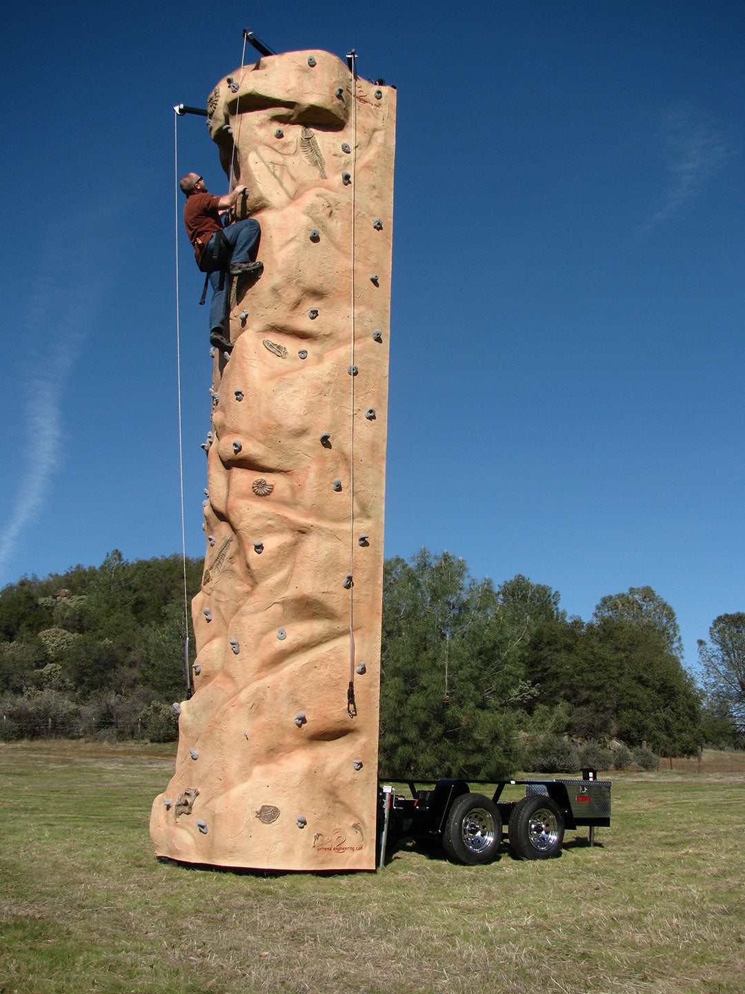 Our mobile climbing wall is perfect for corporate events, malls, fairs, farmer’s markets, zoos, waterparks, resorts, schools and anywhere you can fit a mobile climbing wall. Wall surface is hand sculpted from fiberglass composite to look and feel like real rock. The Mobile Climbing Wall is a perfect portable and functional billboard as well. We can design and install custom banners for you to advertise on it.