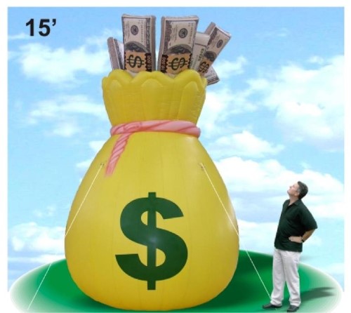 Make it rain with this ginormous inflatable Money Bag! Perfect for a sales event prop or an over-the-top photo op, this giant inflatable will add some serious flavor to any celebration! Your IG game just got 💸.