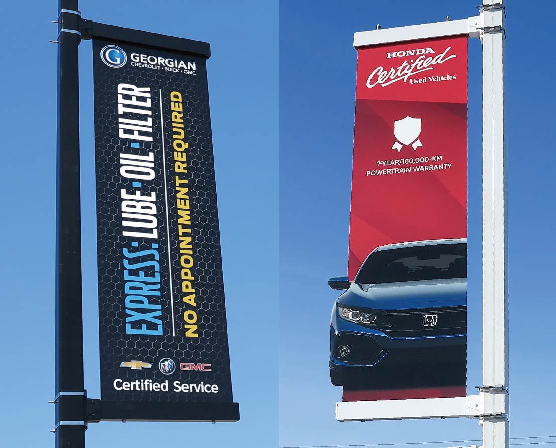 Make the most of your outdoor space with our Pole Signs! Our durable flags, banners, and signs can help boost brand visibility on busy streets and corners. Create the perfect outdoor advertisement that stands out and captures attention.